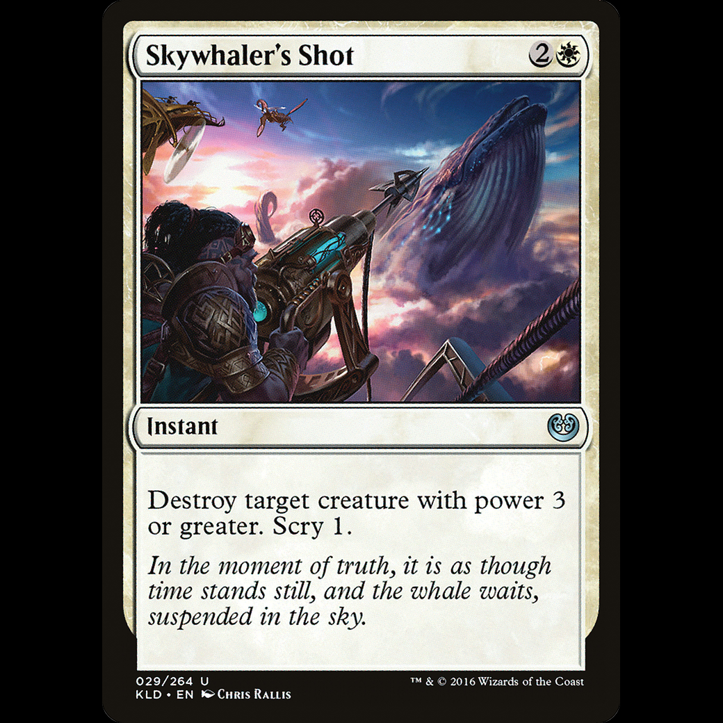 Destroy target creature with power 3 or greater. Scry 1. (Look at the top card of your library. You may put that card on the bottom of your library.)