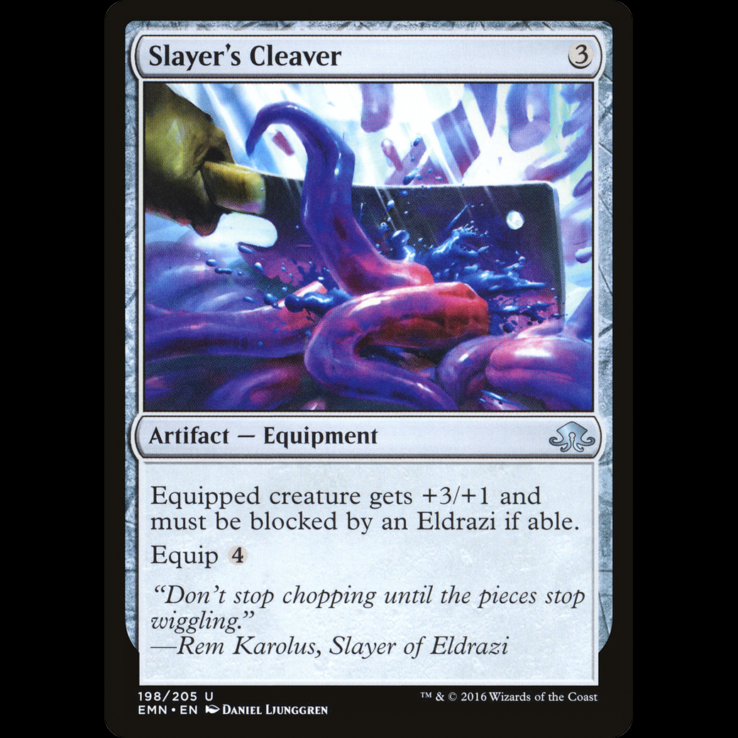 Equipped creature gets +3/+1 and must be blocked by an Eldrazi if able.