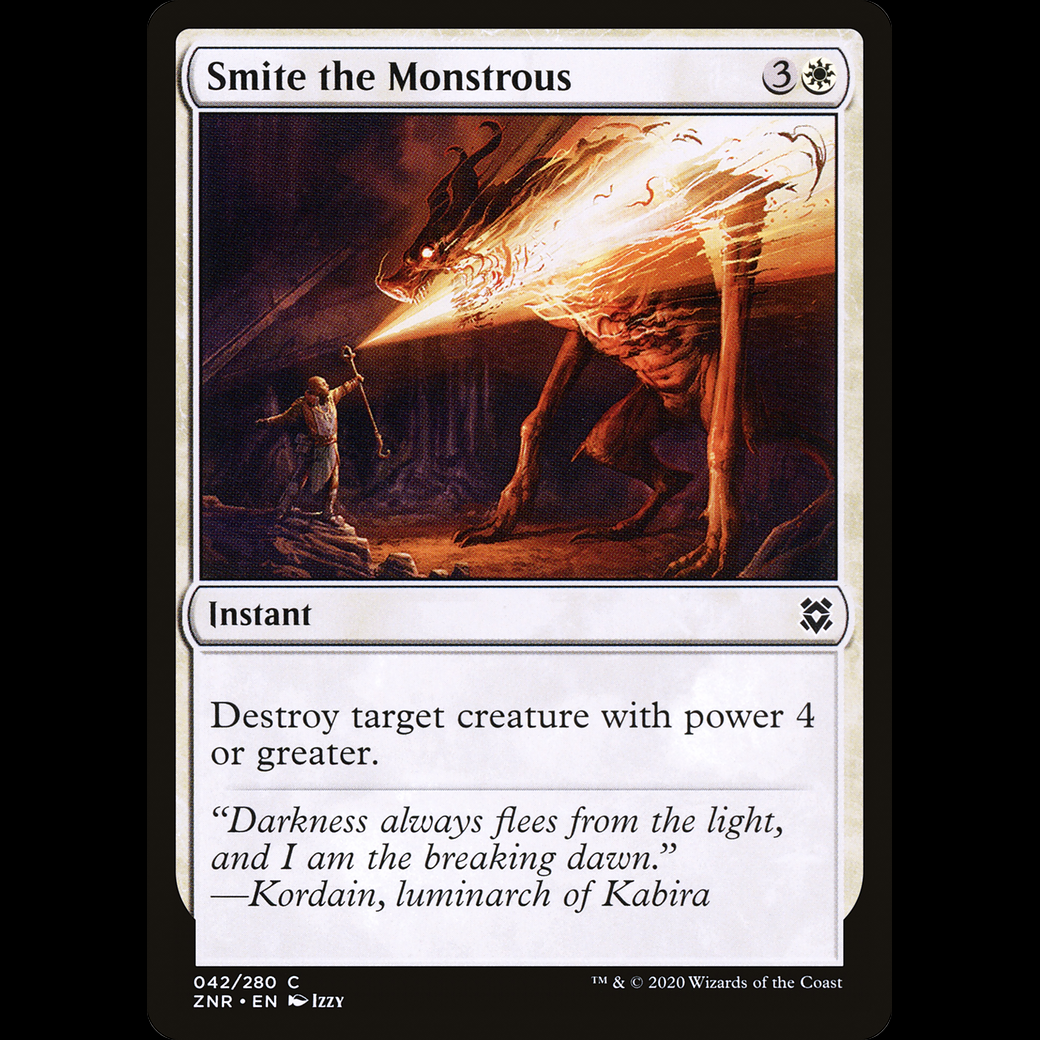 MTG Smite the Monstrous Zendikar Rising znr#42Destroy target creature with power 4 or greater.