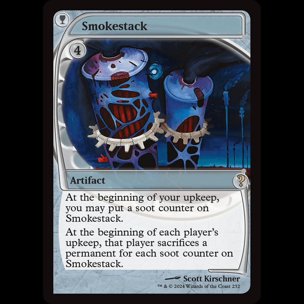 At the beginning of each player's upkeep, that player sacrifices a permanent of their choice for each soot counter on this artifact.