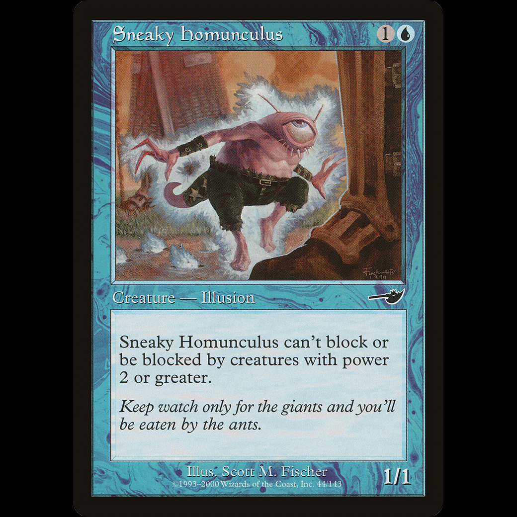 Sneaky Homunculus can't block or be blocked by creatures with power 2 or greater.