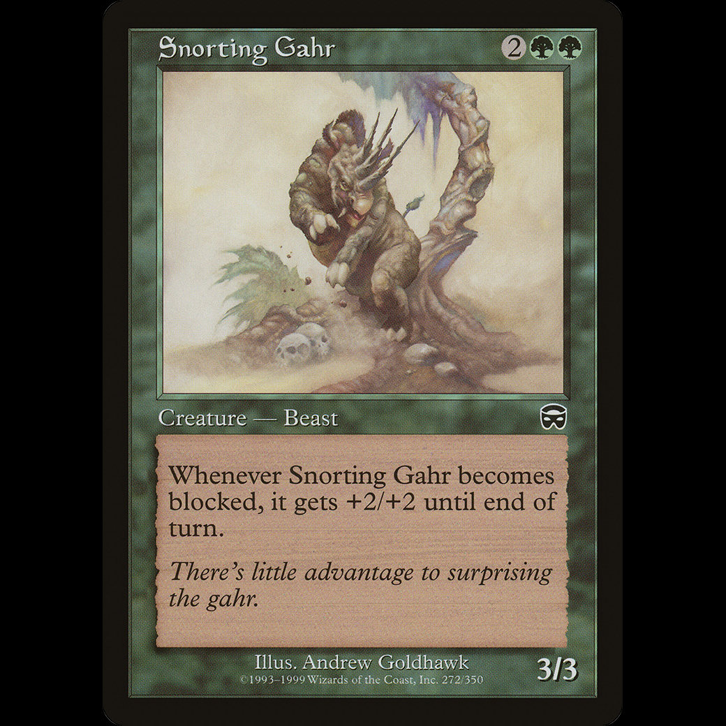 Whenever Snorting Gahr becomes blocked, it gets +2/+2 until end of turn.