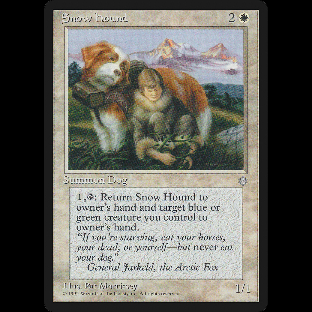 , : Return Snow Hound and target green or blue creature you control to their owner's hand.