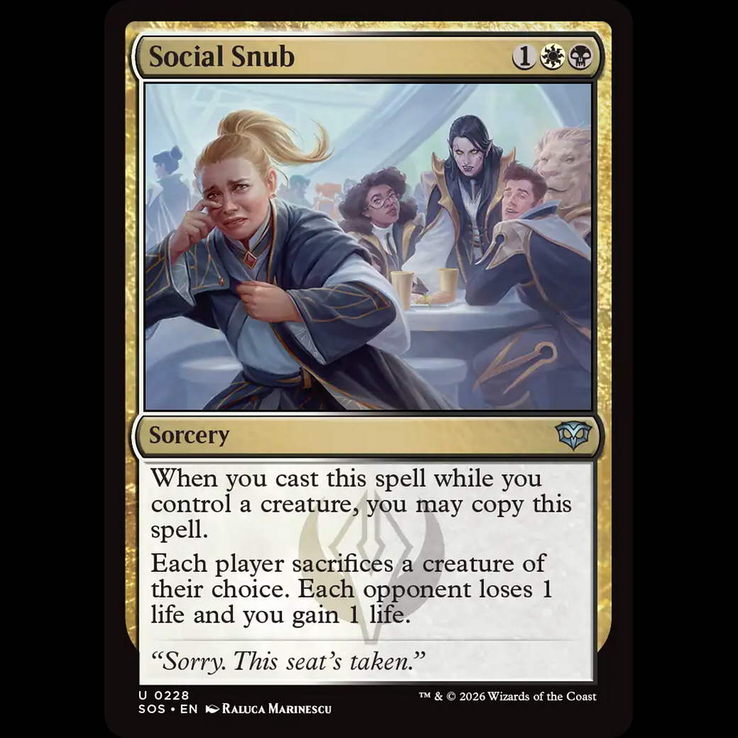 Each player sacrifices a creature of their choice. Each opponent loses 1 life and you gain 1 life.