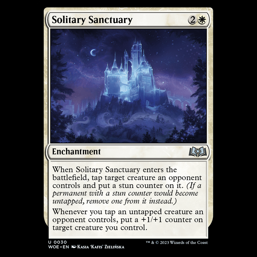 When Solitary Sanctuary enters the battlefield, tap target creature an opponent controls and put a stun counter on it. (If a permanent with a stun counter would become untapped, remove one from it instead.)