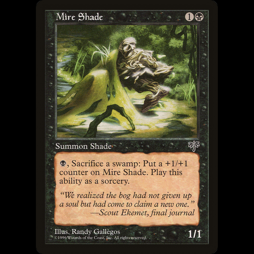 , Sacrifice a Swamp: Put a +1/+1 counter on Mire Shade. Activate only as a sorcery.