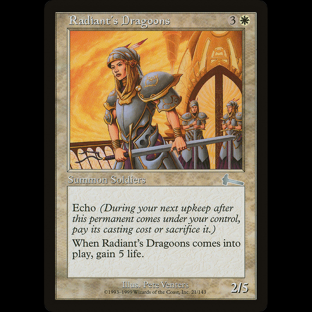 When Radiant's Dragoons enters the battlefield, you gain 5 life.