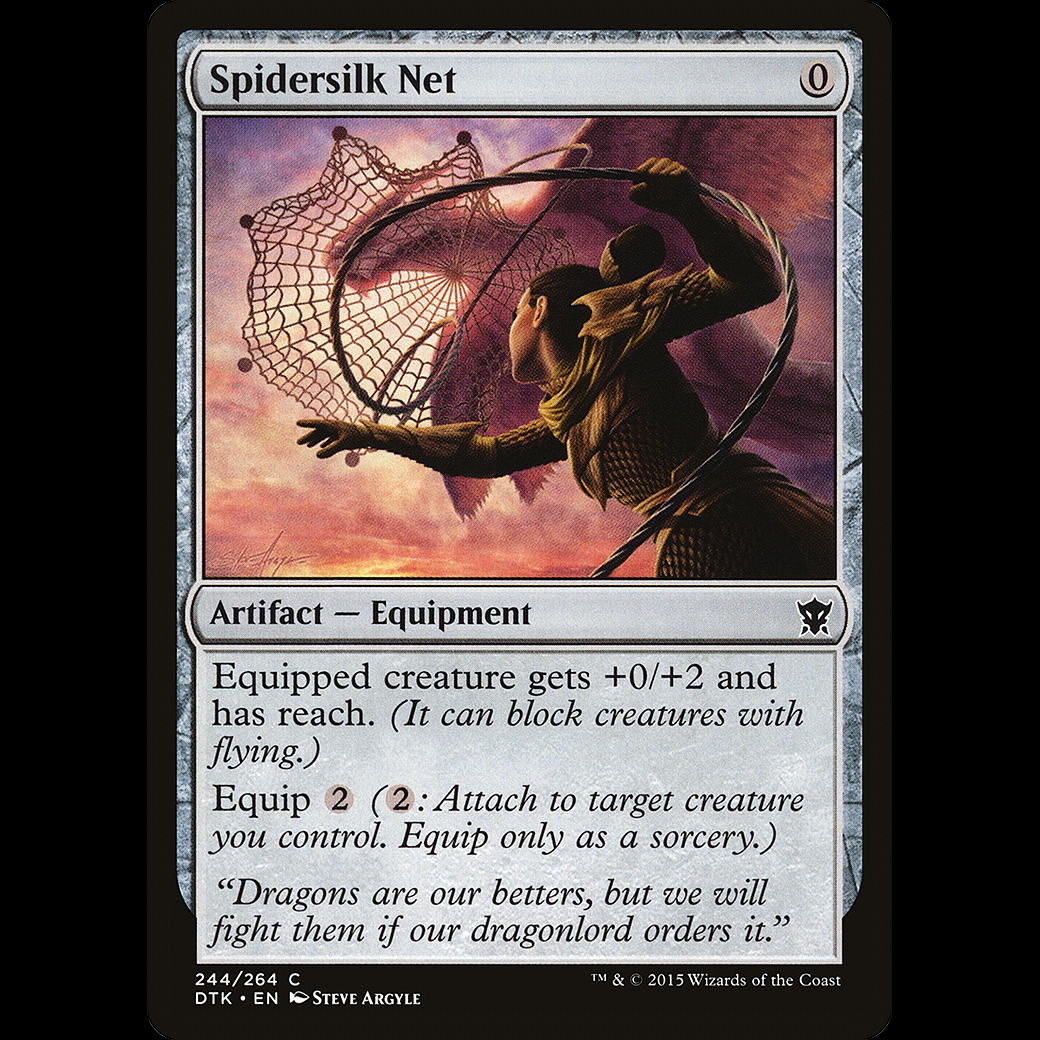 Equipped creature gets +0/+2 and has reach. (It can block creatures with flying.)
