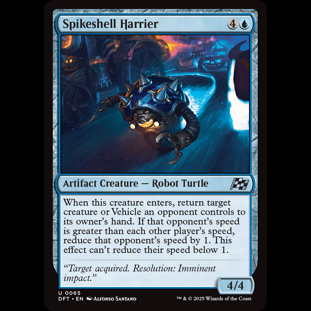 When this creature enters, return target creature or Vehicle an opponent controls to its owner's hand. If that opponent's speed is greater than each other player's speed, reduce that opponent's speed by 1. This effect can't reduce their speed below 1.