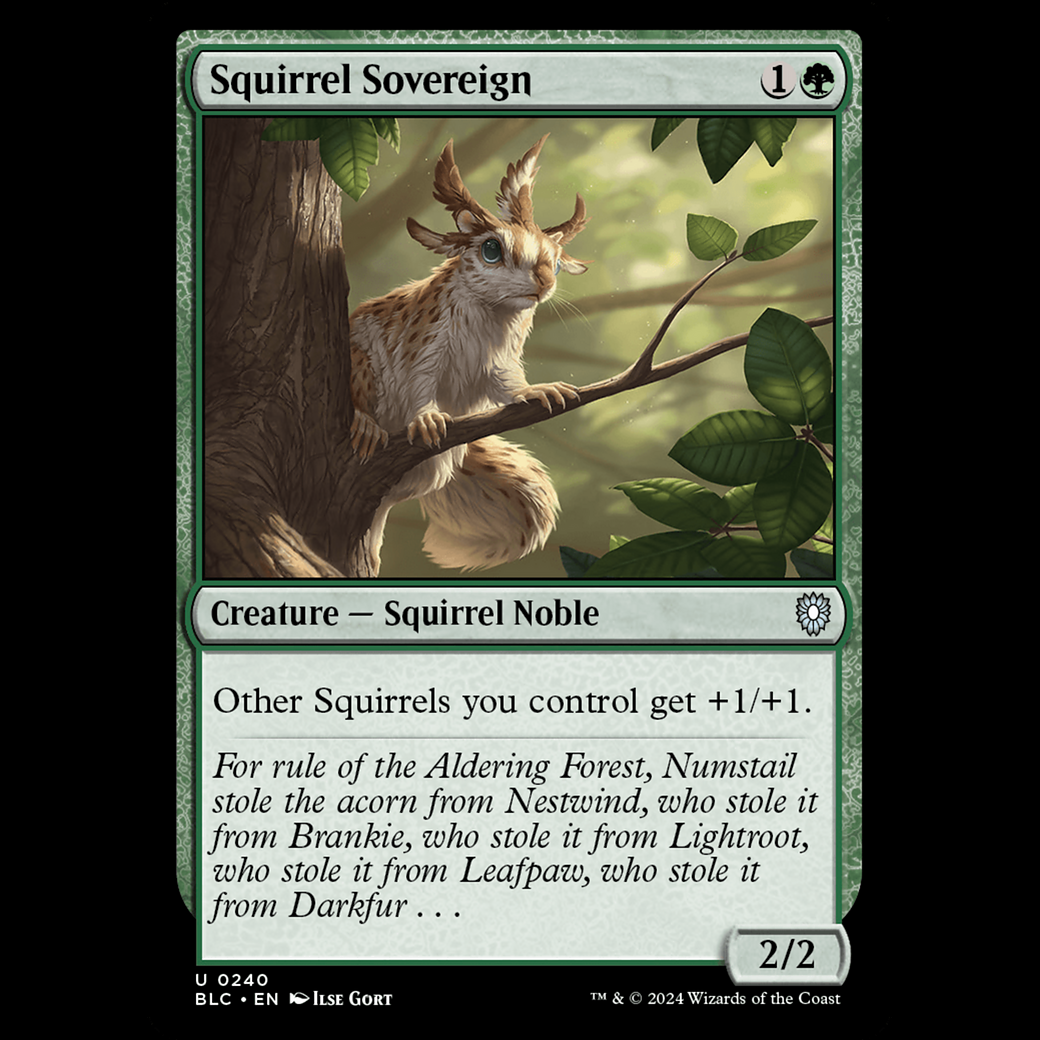 MTG Squirrel Sovereign Bloomburrow Commander blc#240Other Squirrels you control get +1/+1.