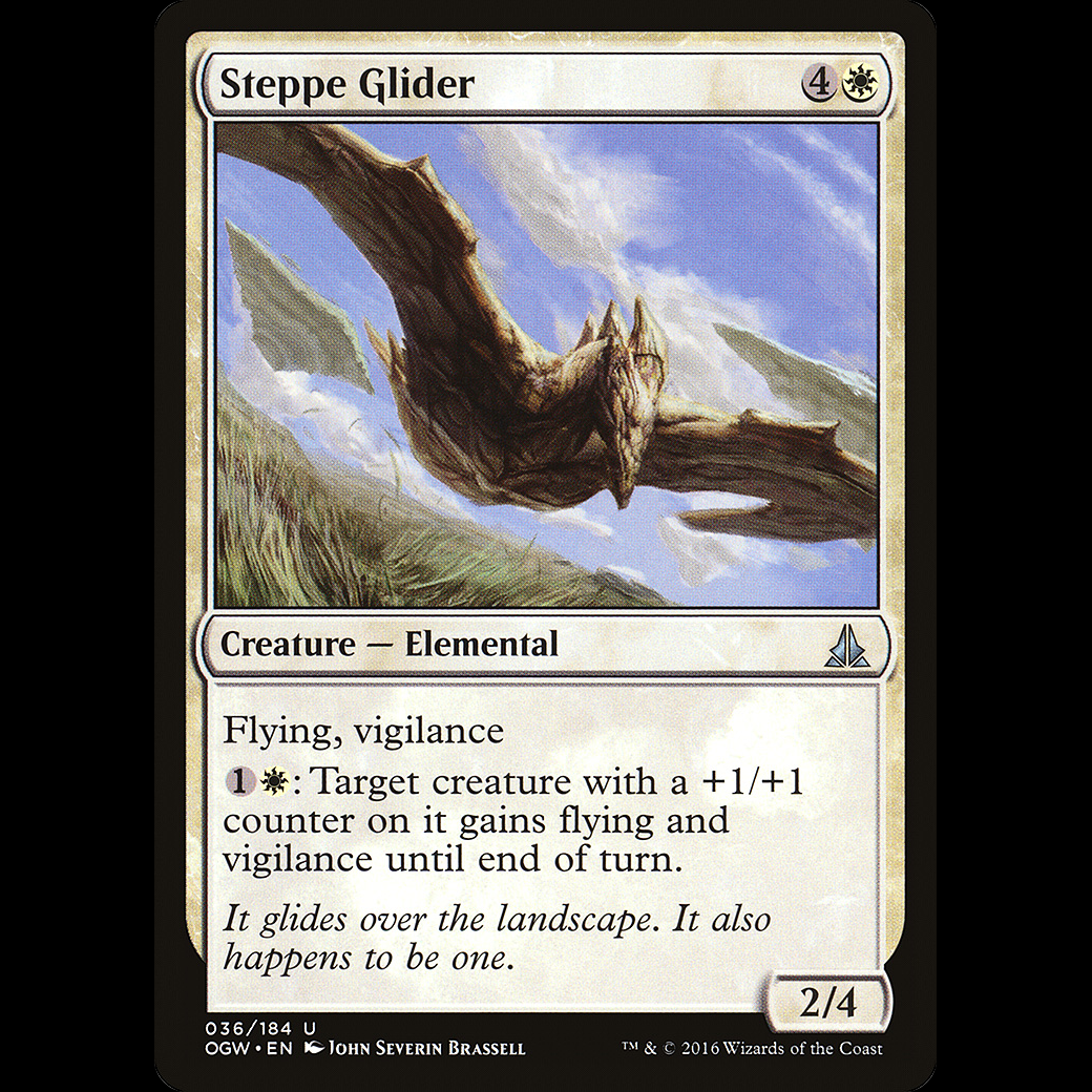: Target creature with a +1/+1 counter on it gains flying and vigilance until end of turn.