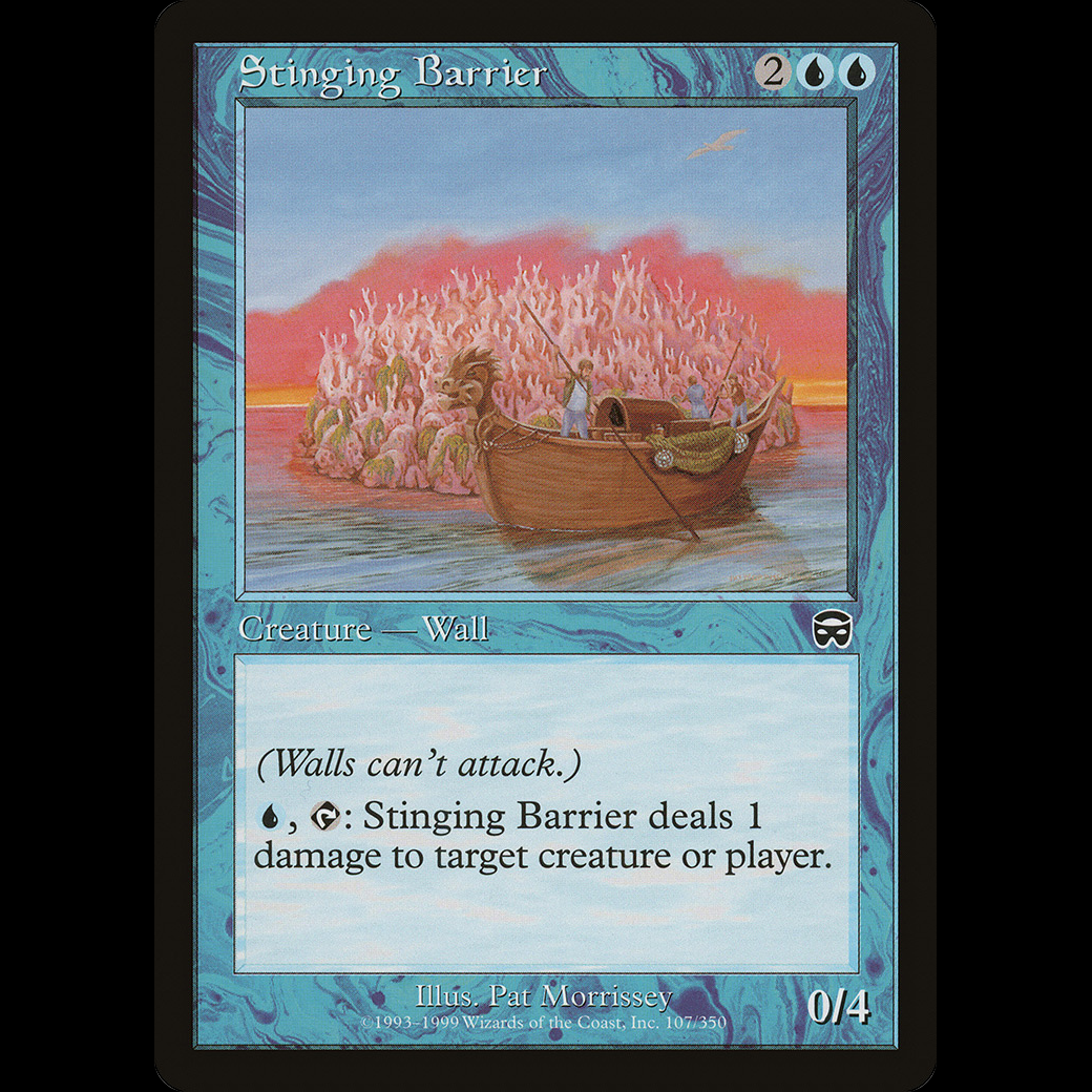 MTG Stinging Barrier Mercadian MasquesDefender (This creature can't attack.) , : Stinging Barrier deals 1 damage to any target.
