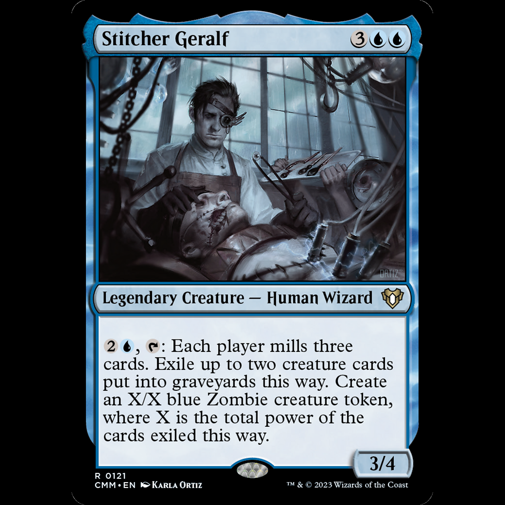 , : Each player mills three cards. Exile up to two creature cards put into graveyards this way. Create an X/X blue Zombie creature token, where X is the total power of the cards exiled this way.