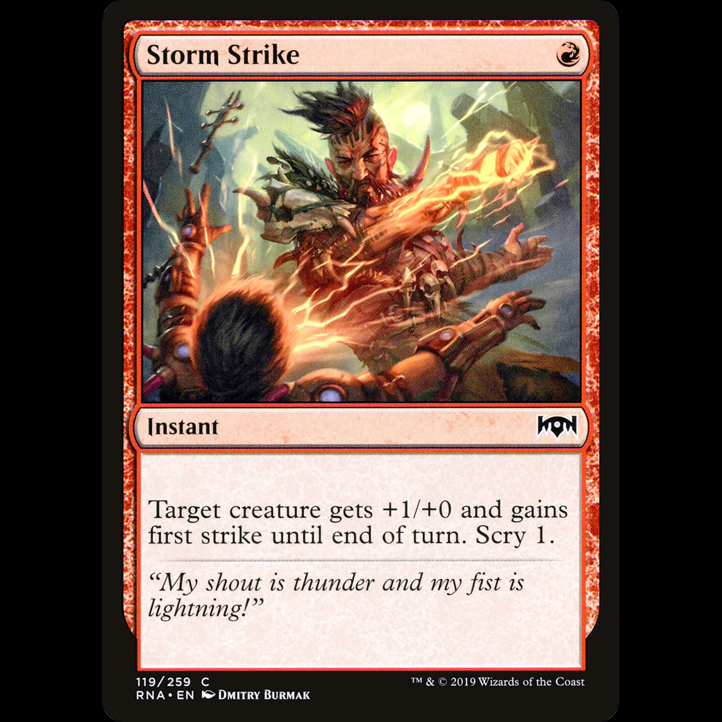 Target creature gets +1/+0 and gains first strike until end of turn. Scry 1.