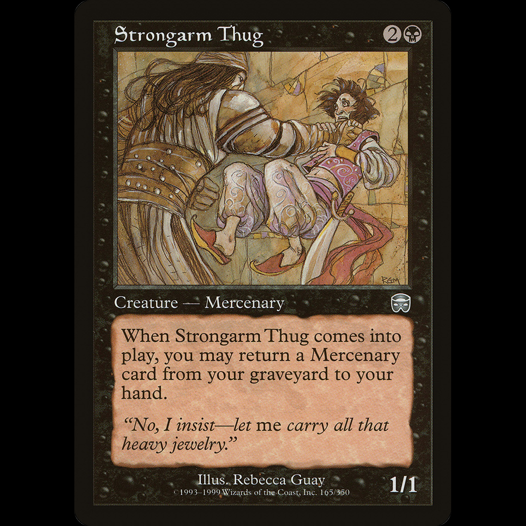 When Strongarm Thug enters the battlefield, you may return target Mercenary card from your graveyard to your hand.