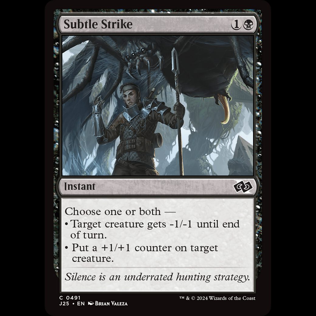 MTG Subtle Strike Foundations Jumpstart j25#491 Choose one or both — • Target creature gets -1/-1 until end of turn. • Put a +1/+1 counter on target creature.