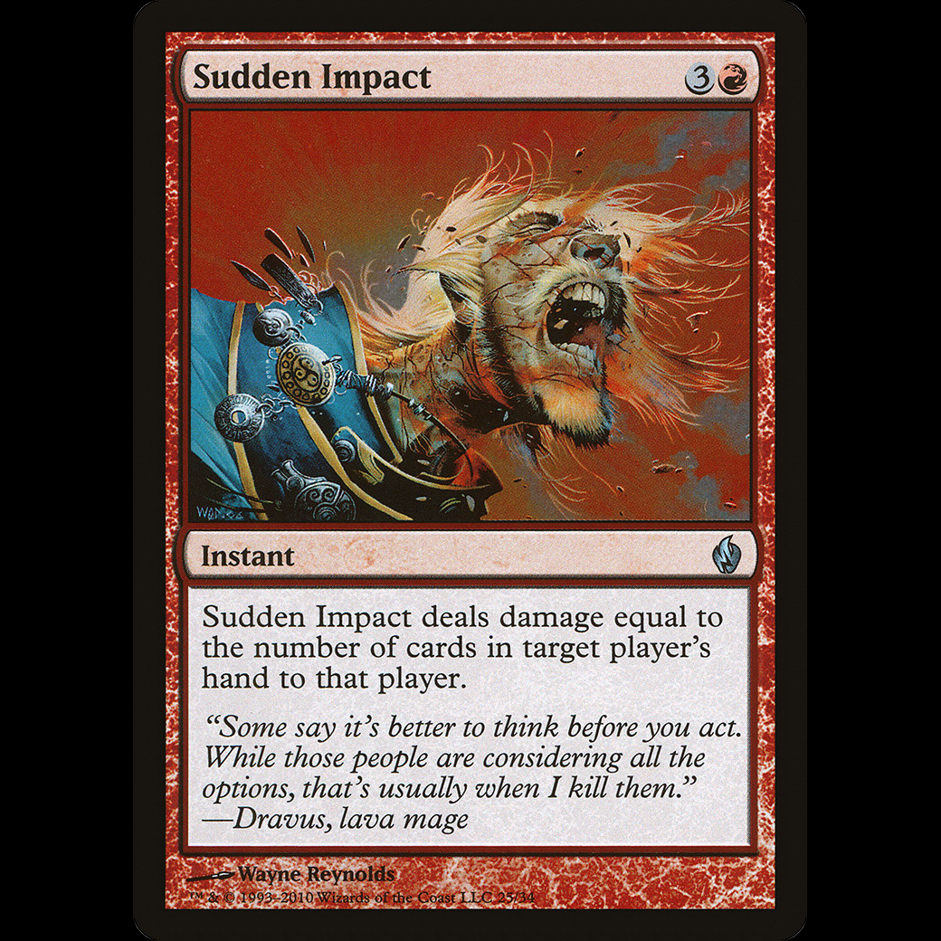 Sudden Impact deals damage to target player equal to the number of cards in that player's hand.