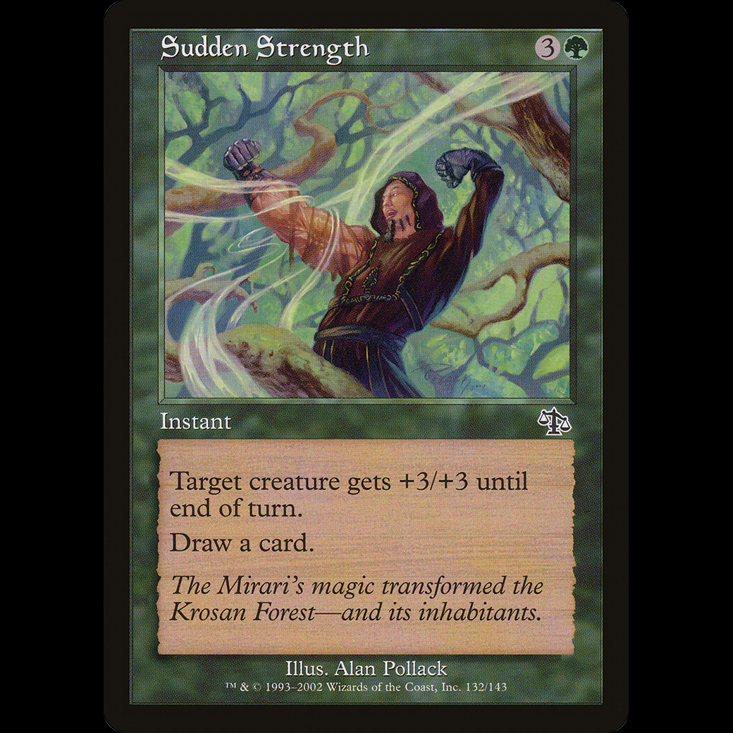 MTG Sudden Strength JudgmentTarget creature gets +3/+3 until end of turn. Draw a card.