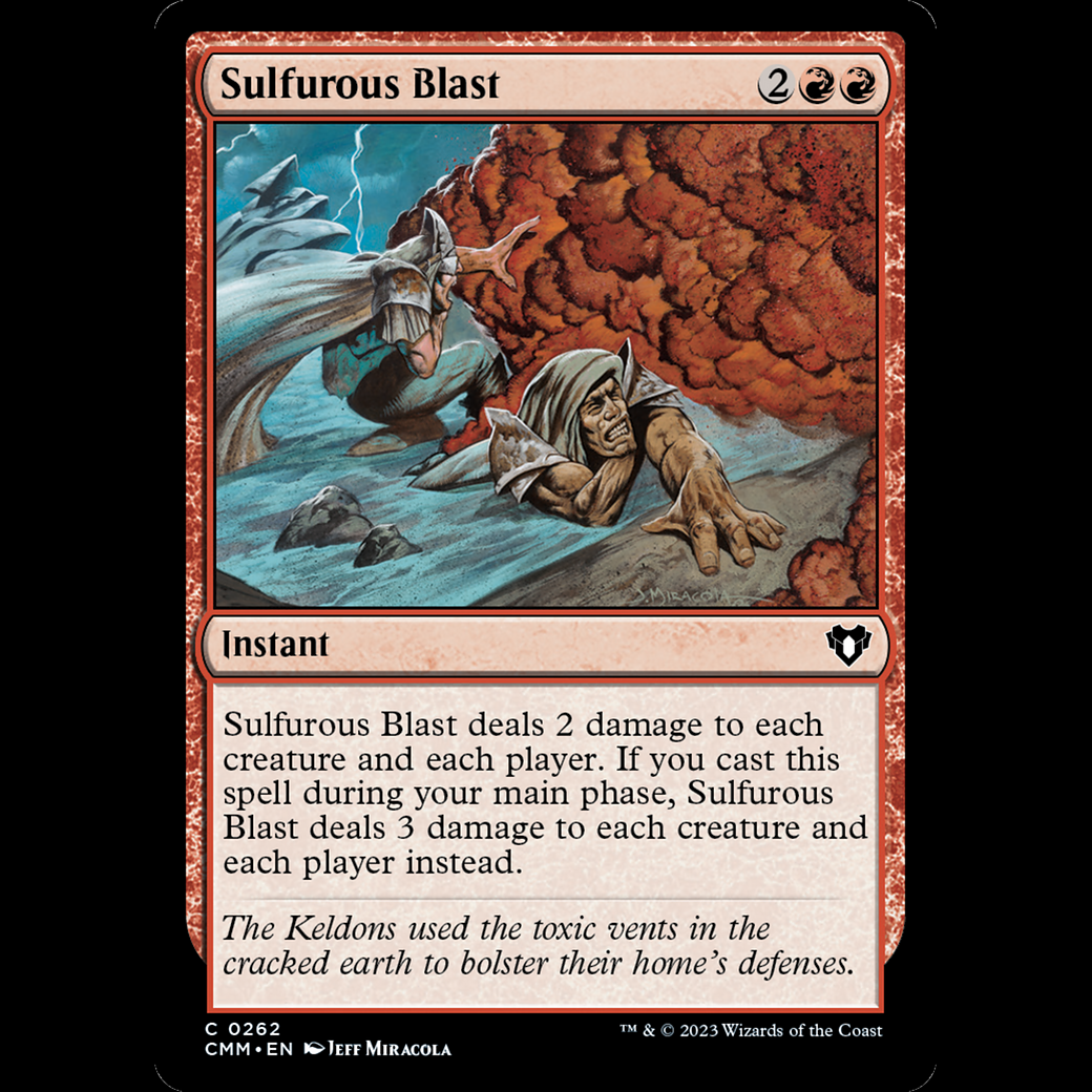 Sulfurous Blast deals 2 damage to each creature and each player. If you cast this spell during your main phase, Sulfurous Blast deals 3 damage to each creature and each player instead.