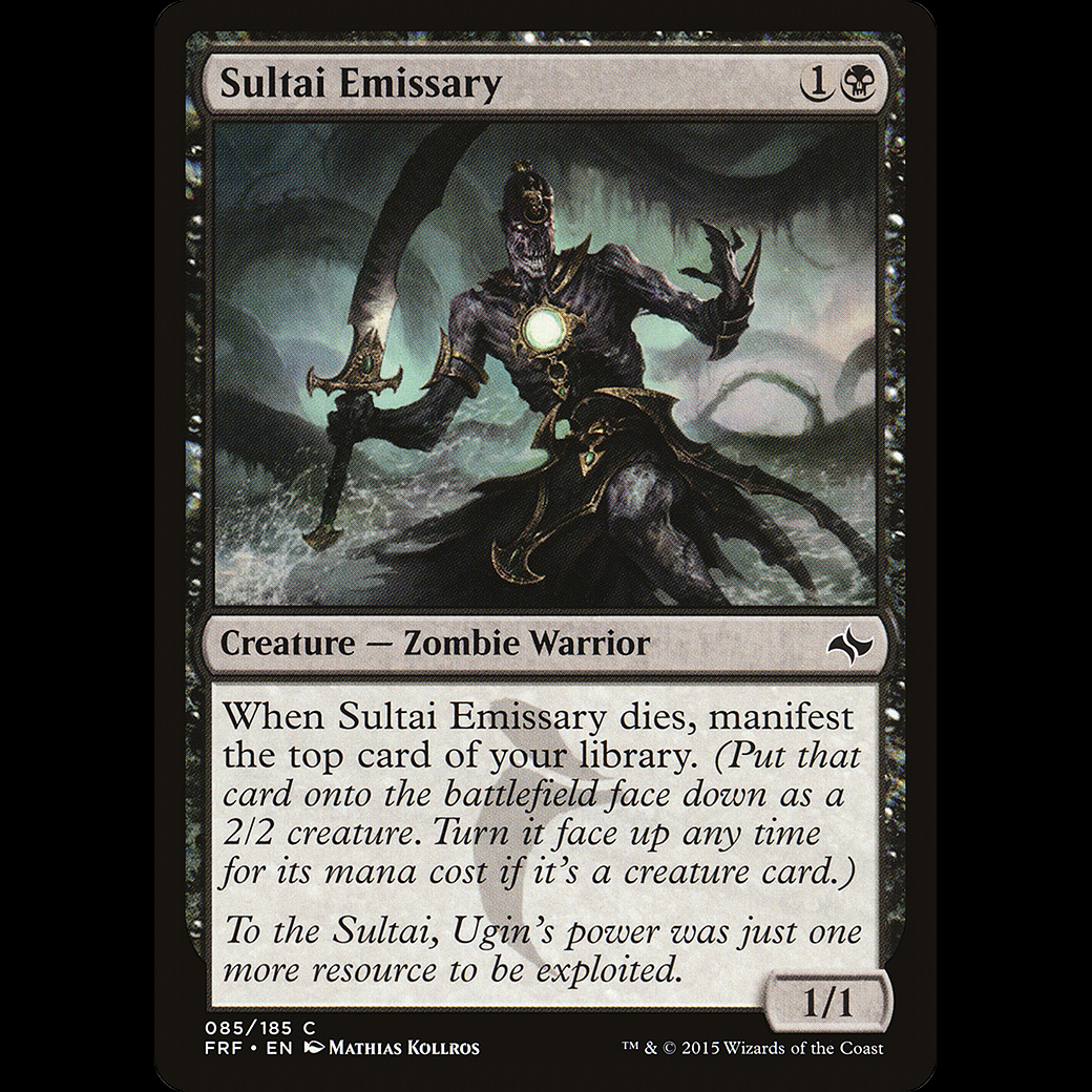 When Sultai Emissary dies, manifest the top card of your library. (Put that card onto the battlefield face down as a 2/2 creature. Turn it face up any time for its mana cost if it's a creature card.)