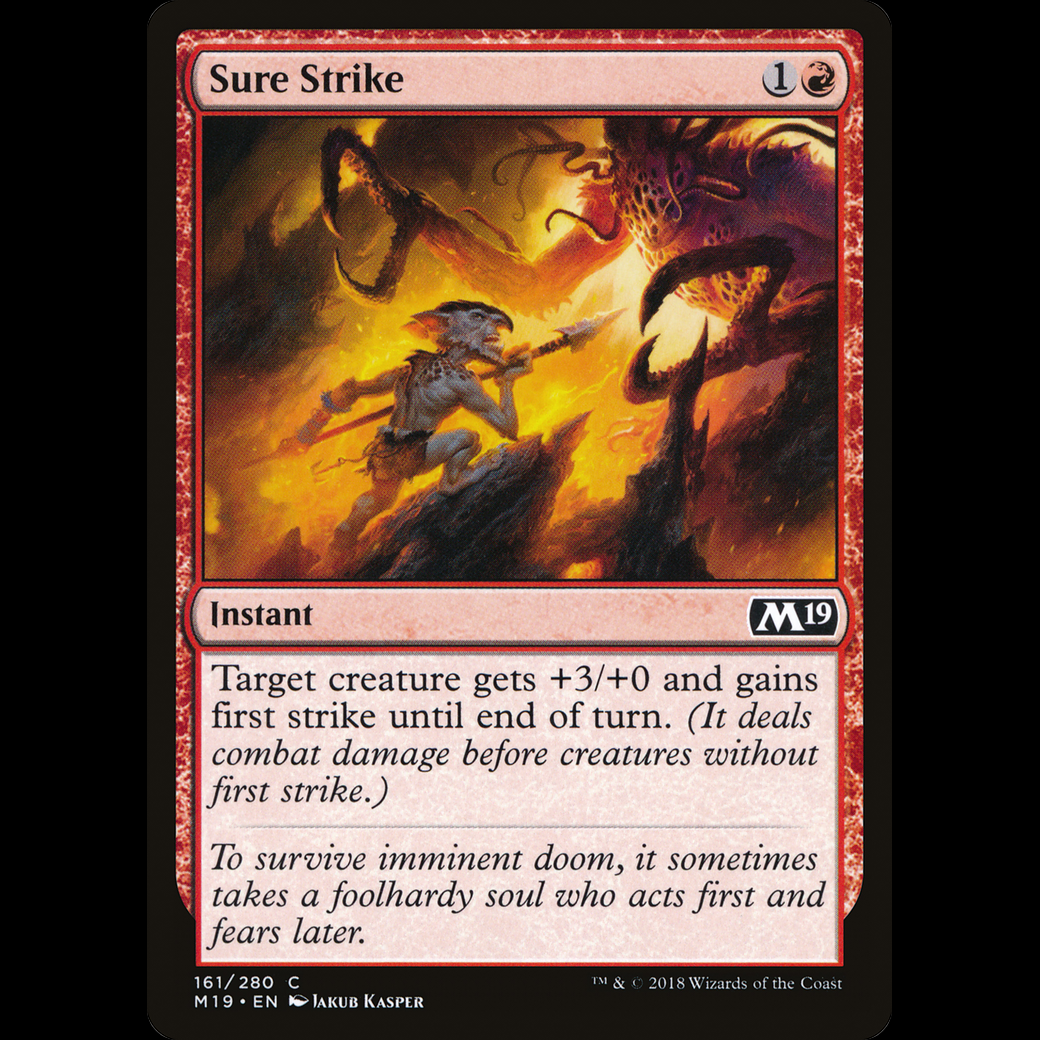 Target creature gets +3/+0 and gains first strike until end of turn.