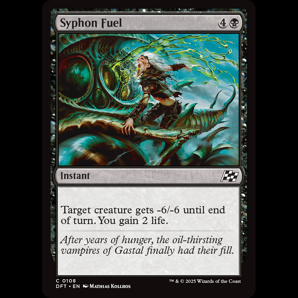 MTG Syphon Fuel Aetherdrift dft#108Target creature gets -6/-6 until end of turn. You gain 2 life.