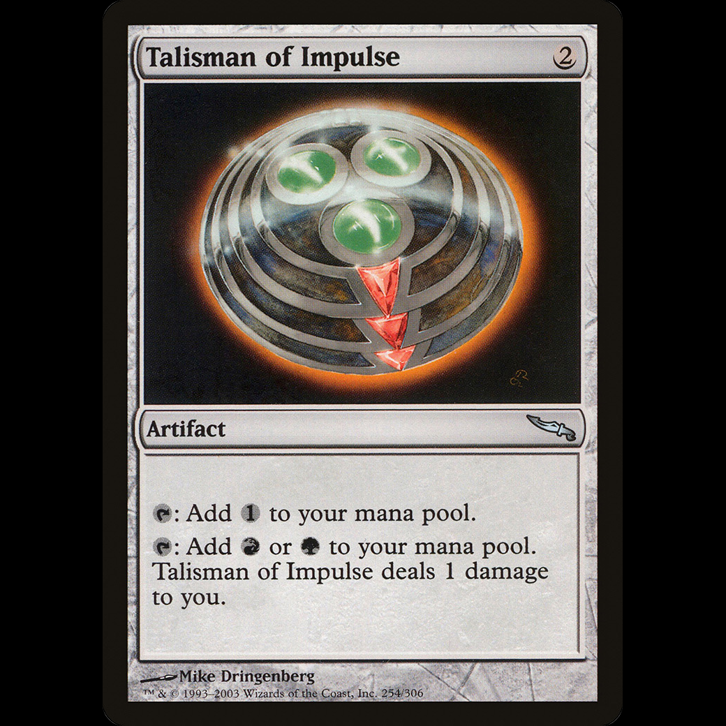 MTG Talisman of Impulse Mirrodin: Add . : Add or . Talisman of Impulse deals 1 damage to you.