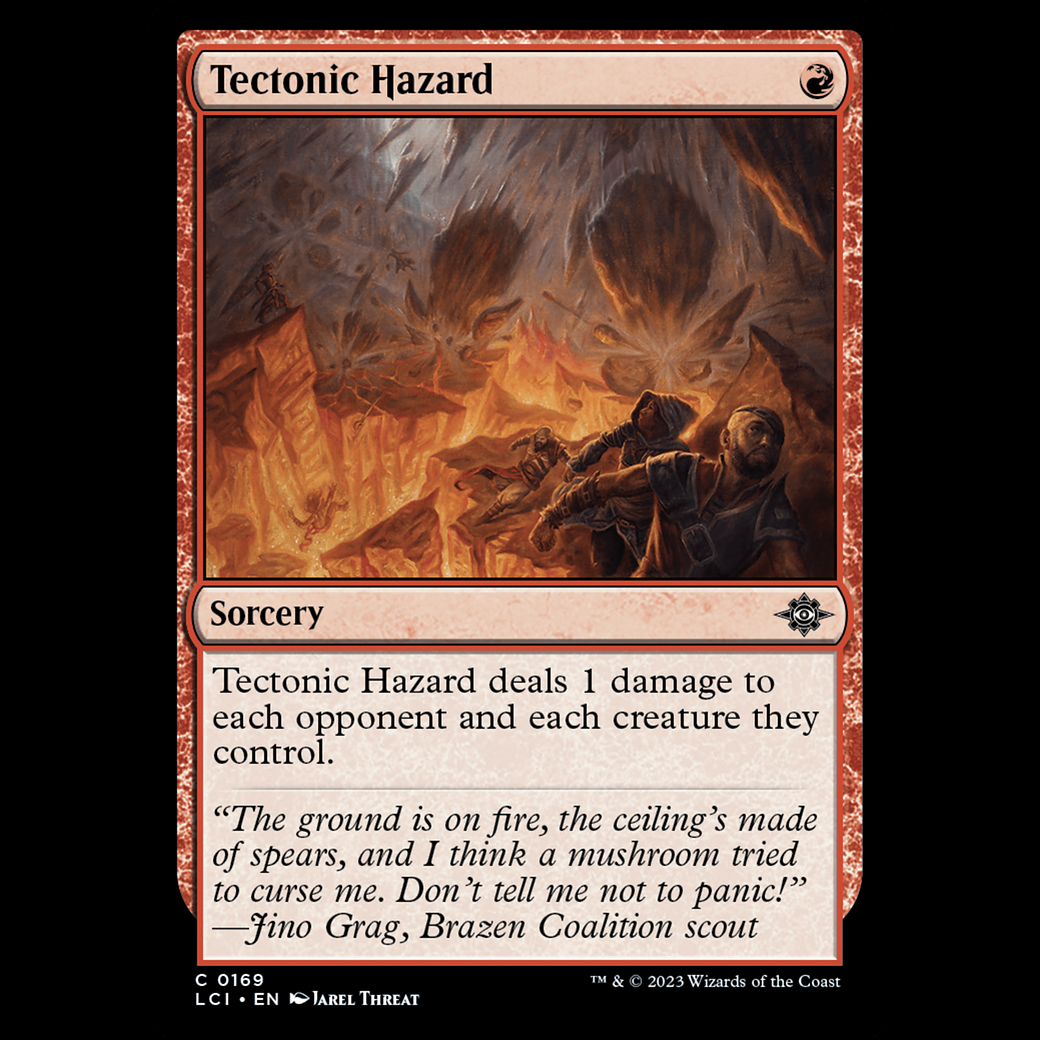 Tectonic Hazard deals 1 damage to each opponent and each creature they control.