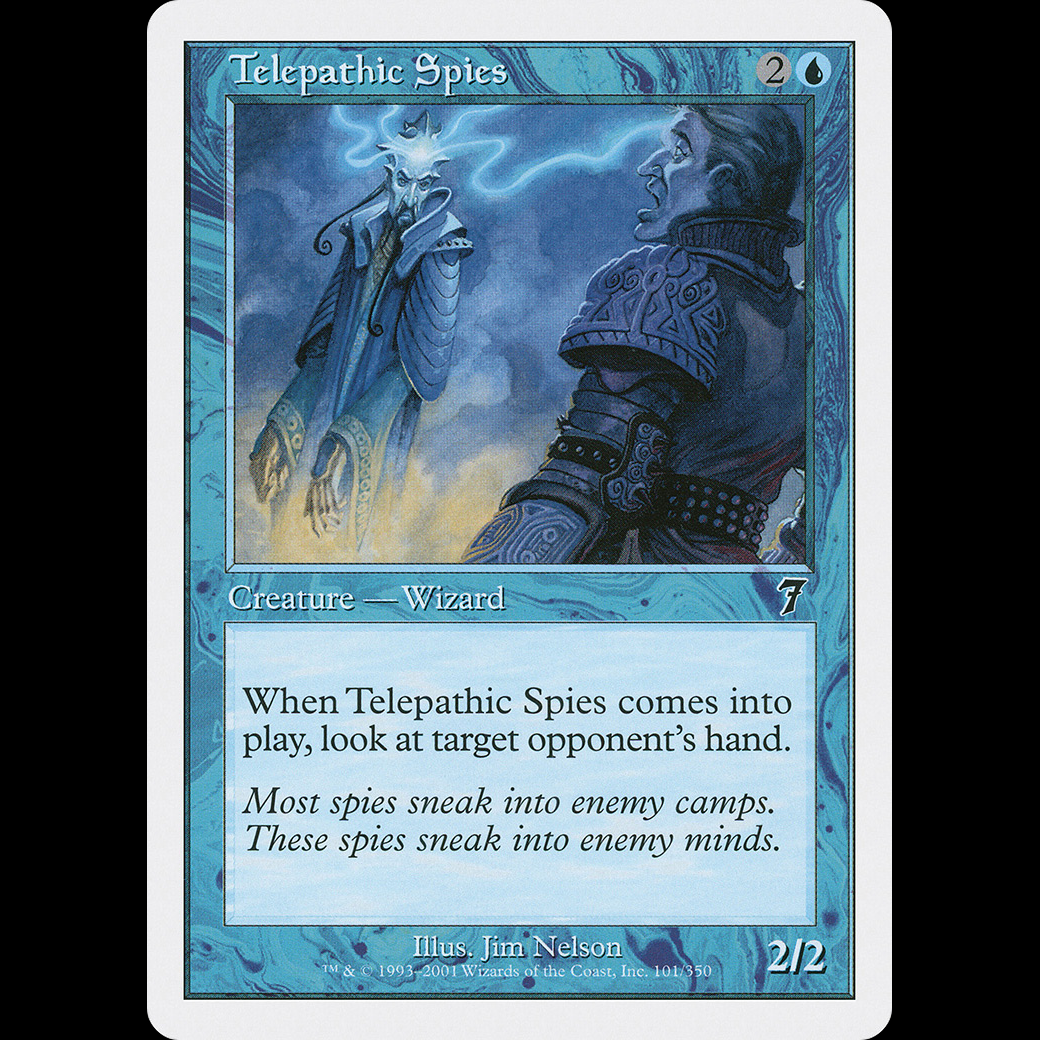 When Telepathic Spies enters the battlefield, look at target opponent's hand.