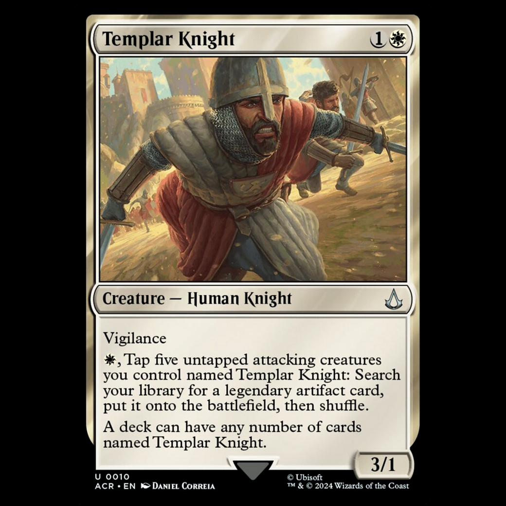 , Tap five untapped attacking creatures you control named Templar Knight: Search your library for a legendary artifact card, put it onto the battlefield, then shuffle.