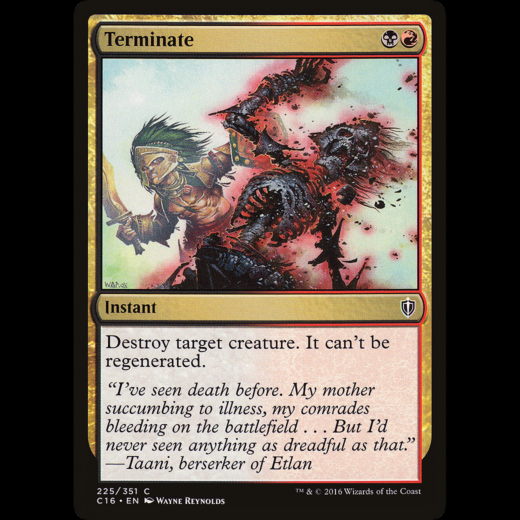 MTG Terminate Commander 2016Destroy target creature. It can't be regenerated.