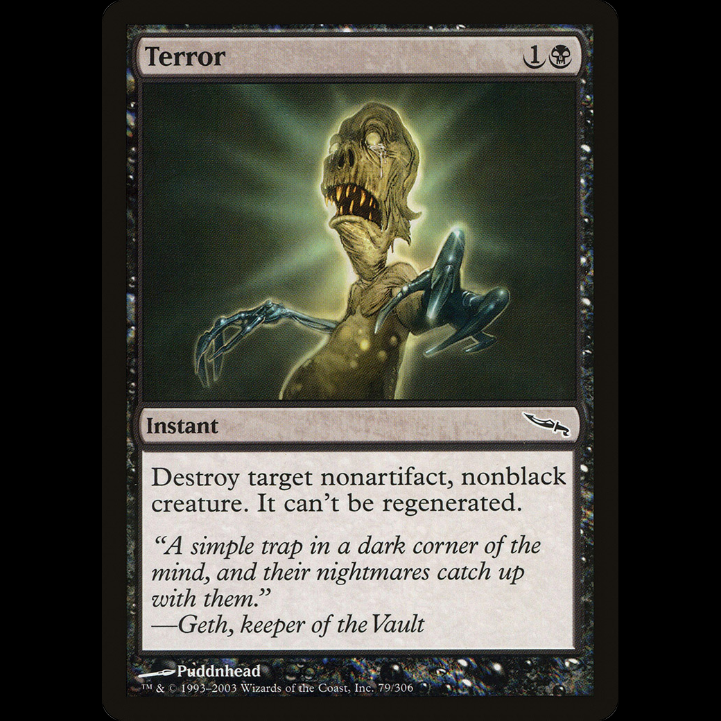Destroy target nonartifact, nonblack creature. It can't be regenerated.