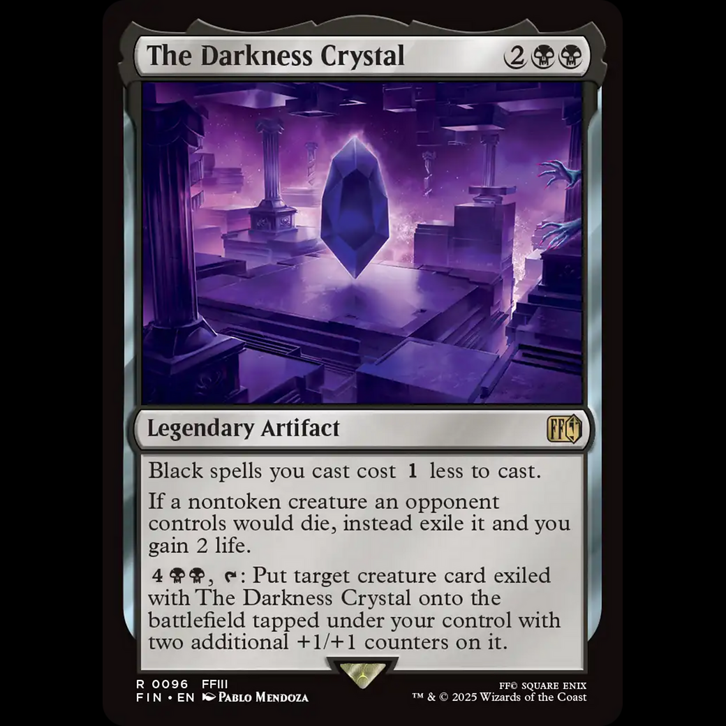 , : Put target creature card exiled with The Darkness Crystal onto the battlefield tapped under your control with two additional +1/+1 counters on it.