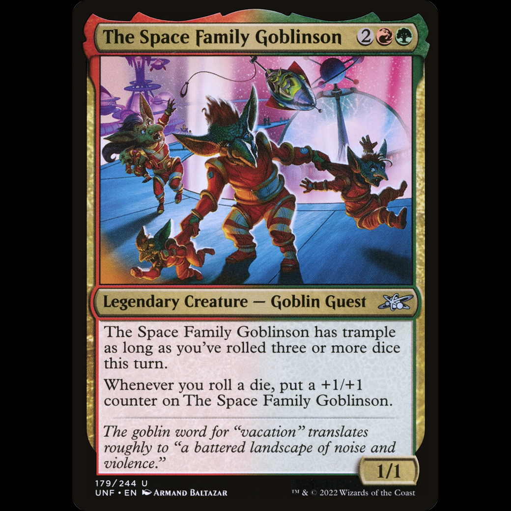 Whenever you roll a die, put a +1/+1 counter on The Space Family Goblinson.