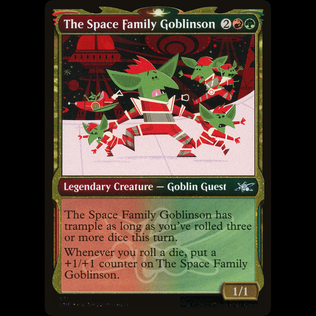 Whenever you roll a die, put a +1/+1 counter on The Space Family Goblinson.