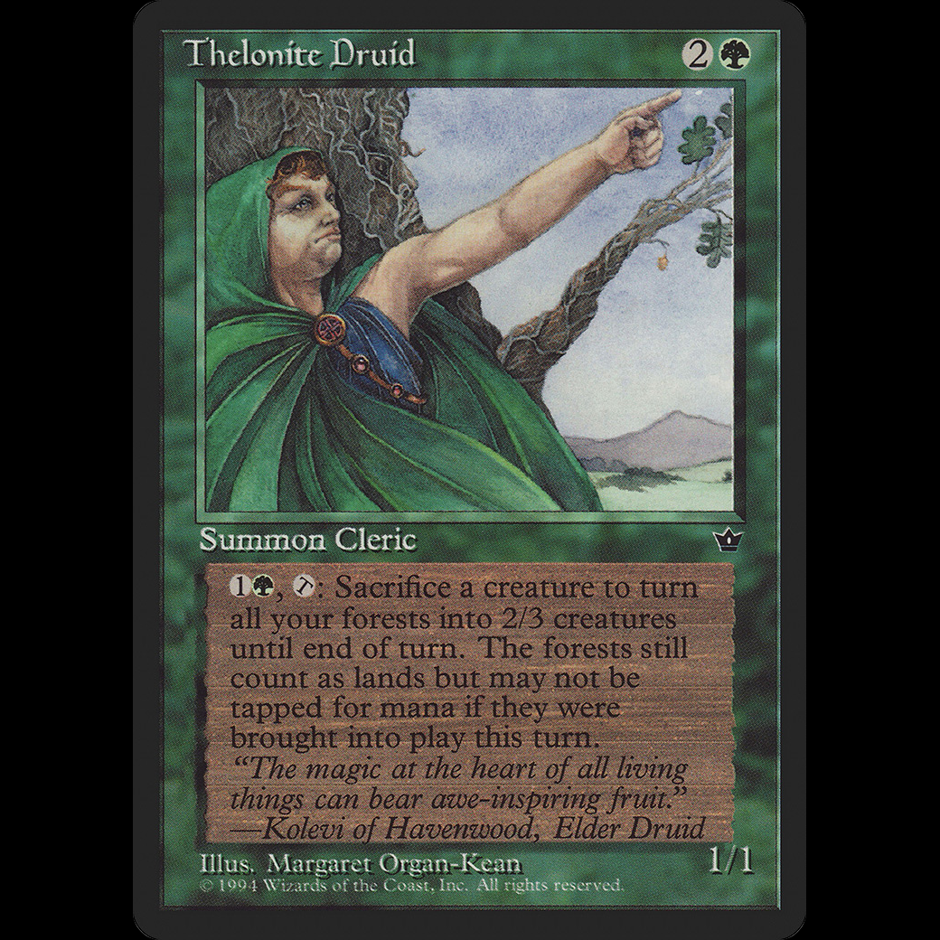 , , Sacrifice a creature: Forests you control become 2/3 creatures until end of turn. They're still lands.