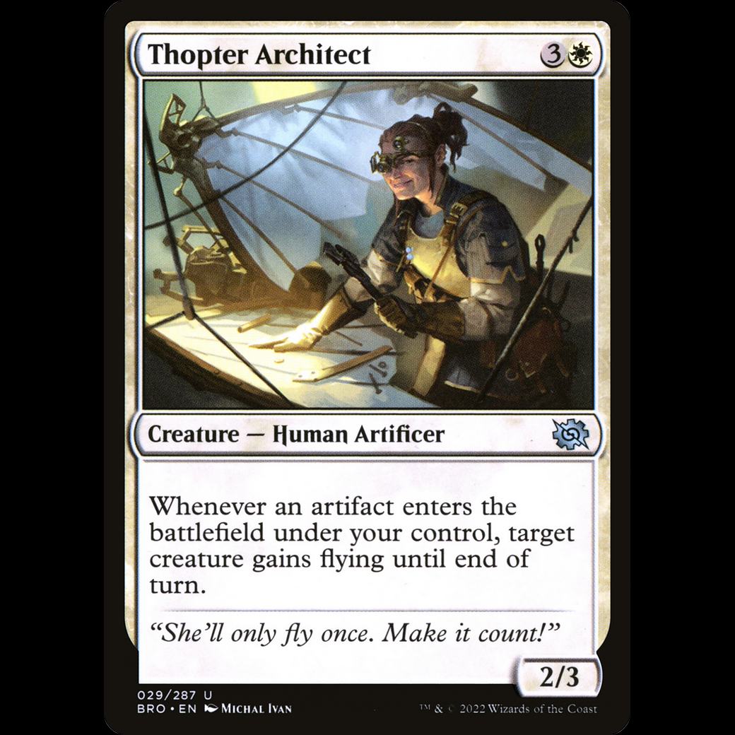 Whenever an artifact you control enters, target creature gains flying until end of turn.