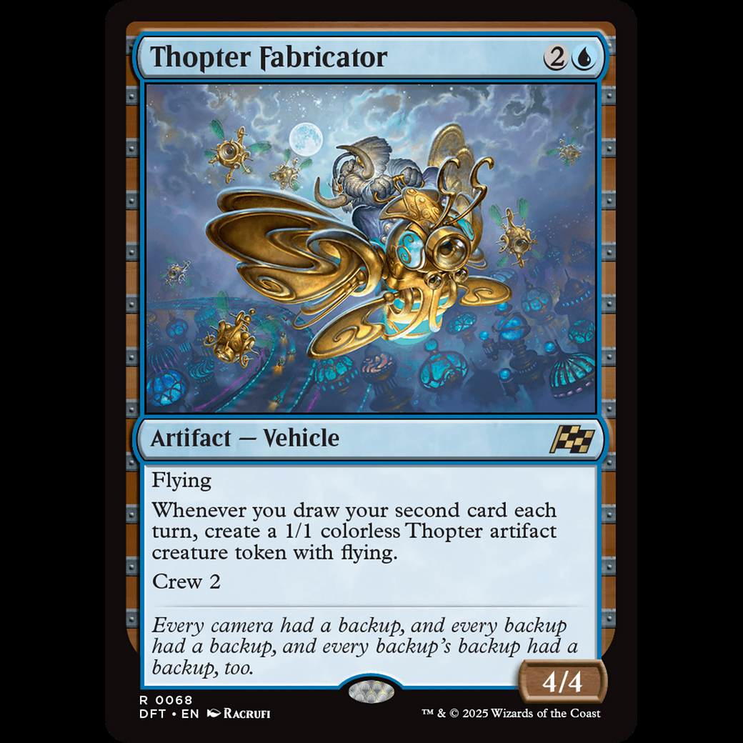 Whenever you draw your second card each turn, create a 1/1 colorless Thopter artifact creature token with flying.