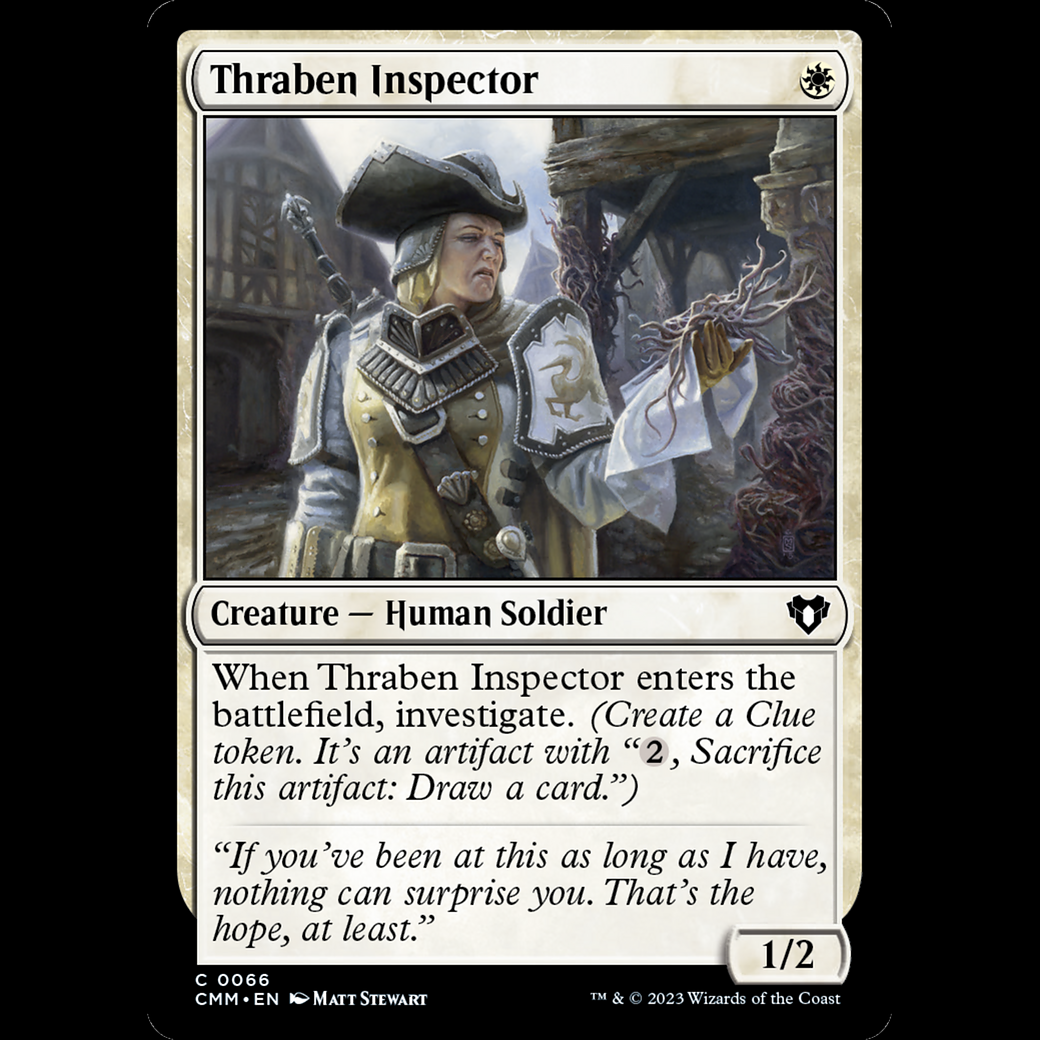 When Thraben Inspector enters, investigate. (Create a Clue token. It's an artifact with ", Sacrifice this artifact: Draw a card.")