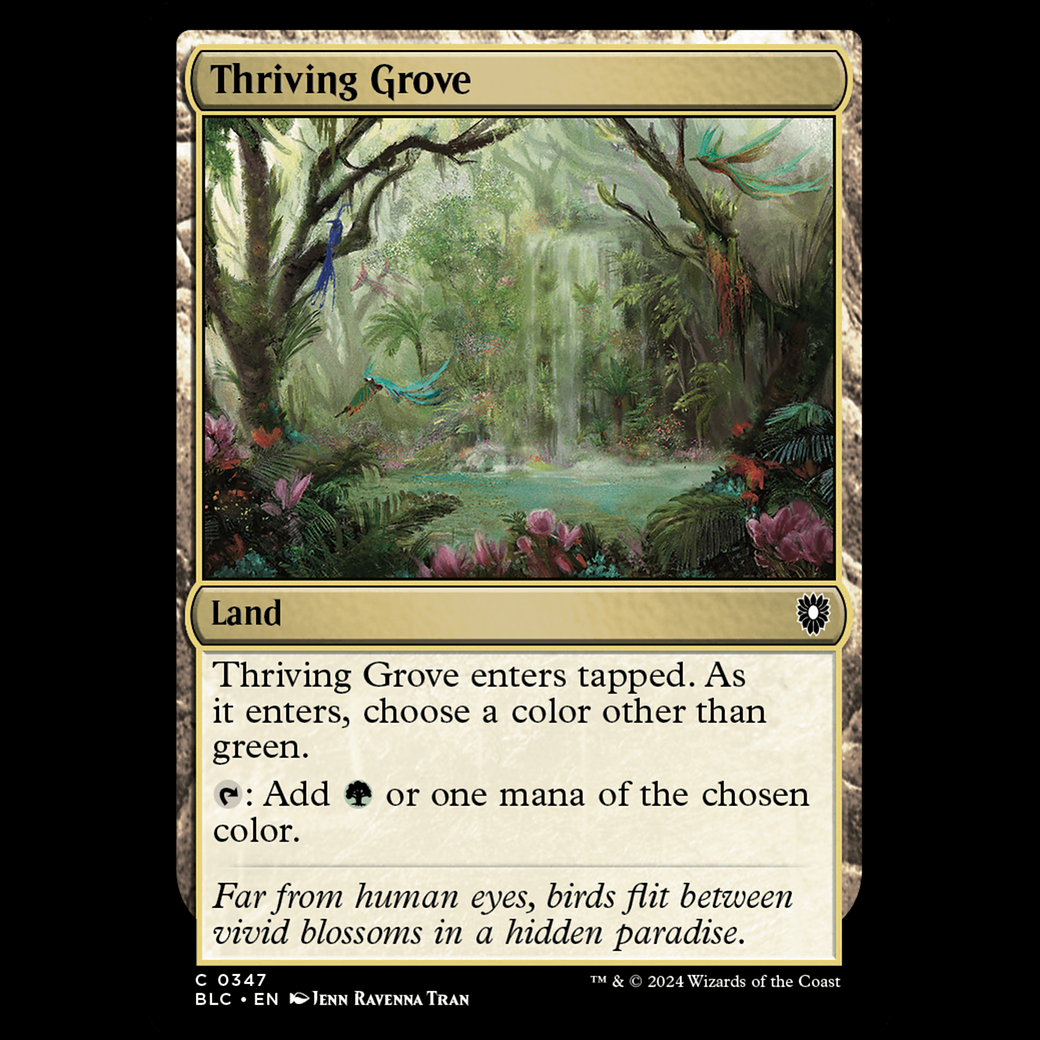 Thriving Grove enters tapped. As it enters, choose a color other than green.