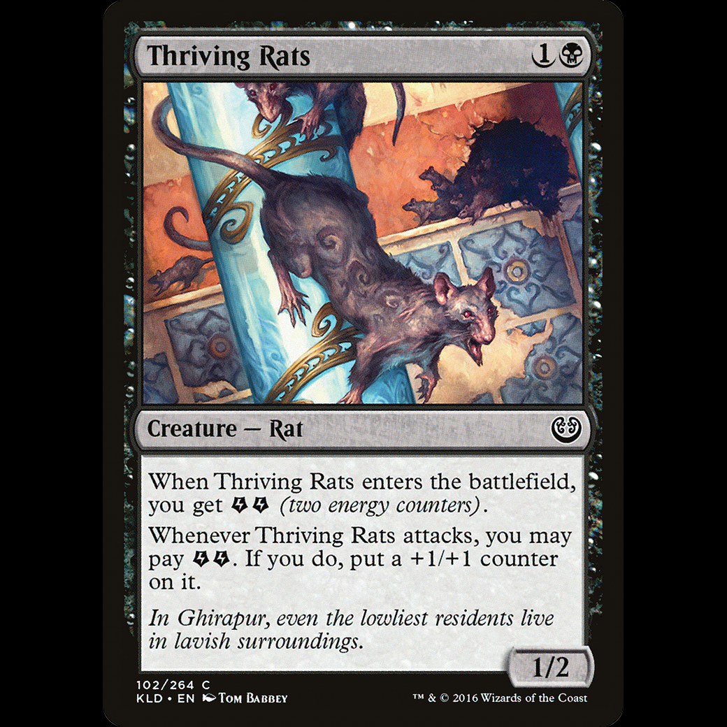 When Thriving Rats enters the battlefield, you get (two energy counters).
