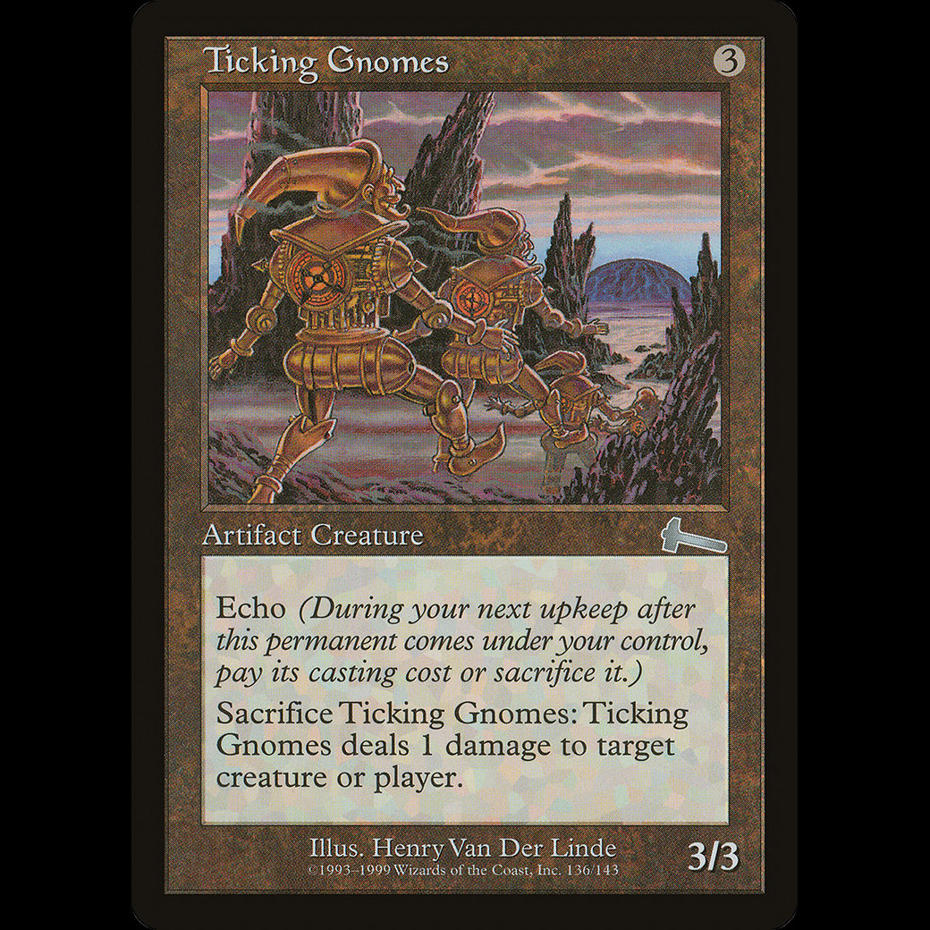Sacrifice Ticking Gnomes: It deals 1 damage to any target.
