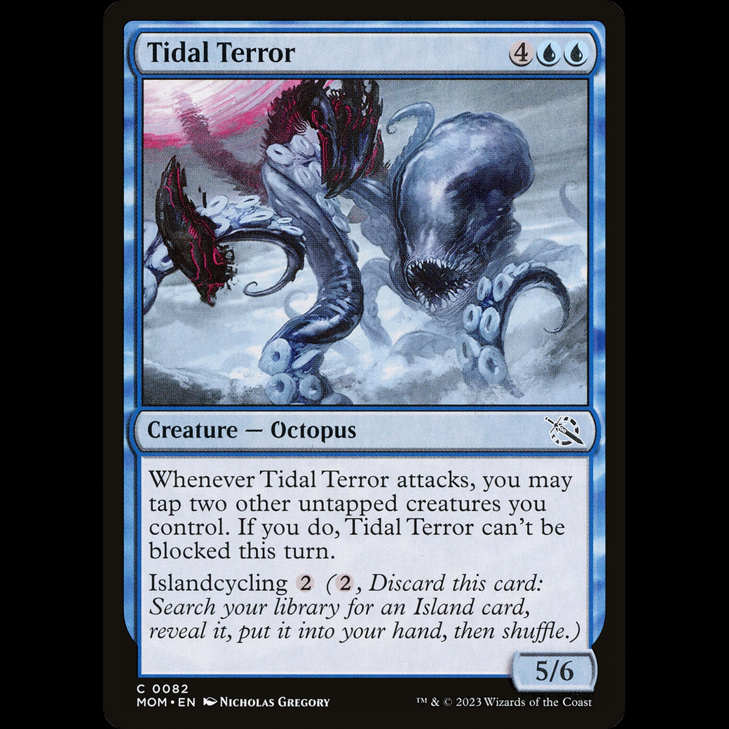 Whenever Tidal Terror attacks, you may tap two other untapped creatures you control. If you do, Tidal Terror can't be blocked this turn.