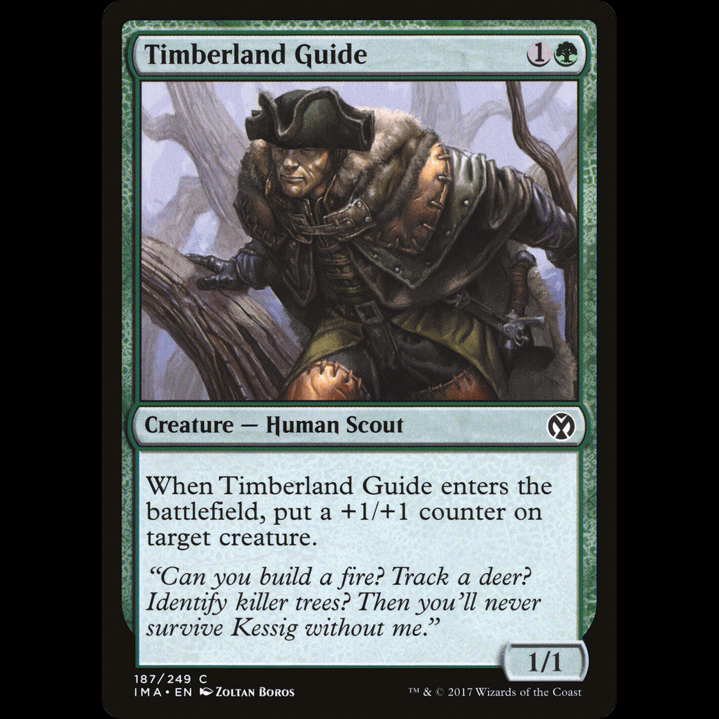 MTG Timberland Guide Iconic Masters ima#187When this creature enters, put a +1/+1 counter on target creature.