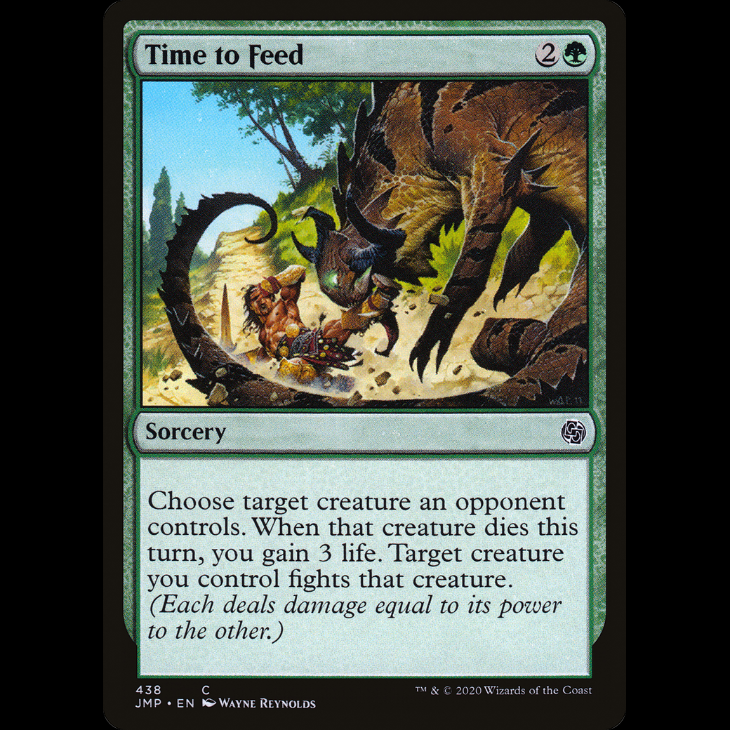 Choose target creature an opponent controls. When that creature dies this turn, you gain 3 life. Target creature you control fights that creature. (Each deals damage equal to its power to the other.)