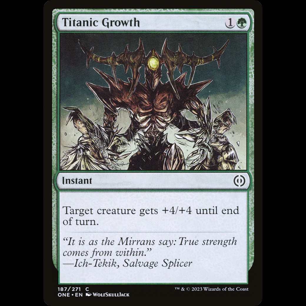 MTG Titanic Growth Phyrexia: All Will Be One one#187Target creature gets +4/+4 until end of turn.