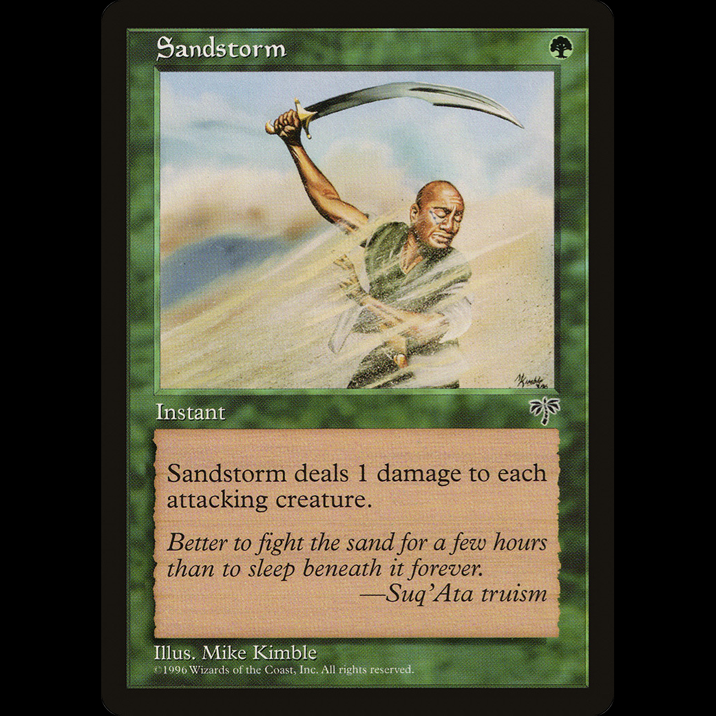 MTG Tormenta de arena (Sandstorm) MirageSandstorm deals 1 damage to each attacking creature.