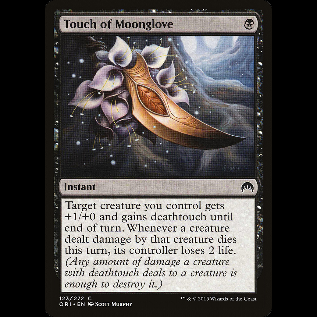 Target creature you control gets +1/+0 and gains deathtouch until end of turn. Whenever a creature dealt damage by that creature dies this turn, its controller loses 2 life. (Any amount of damage a creature with deathtouch deals to a creature is enough to destroy it.)