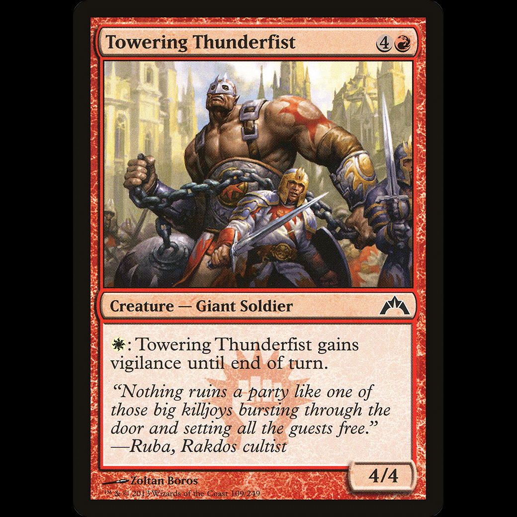 MTG Towering Thunderfist Gatecrash: Towering Thunderfist gains vigilance until end of turn.