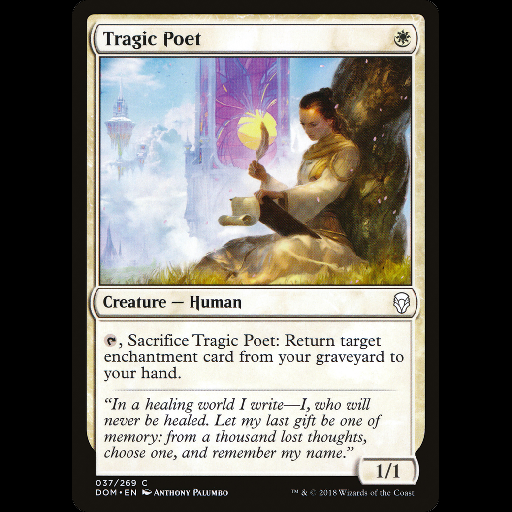 , Sacrifice Tragic Poet: Return target enchantment card from your graveyard to your hand.